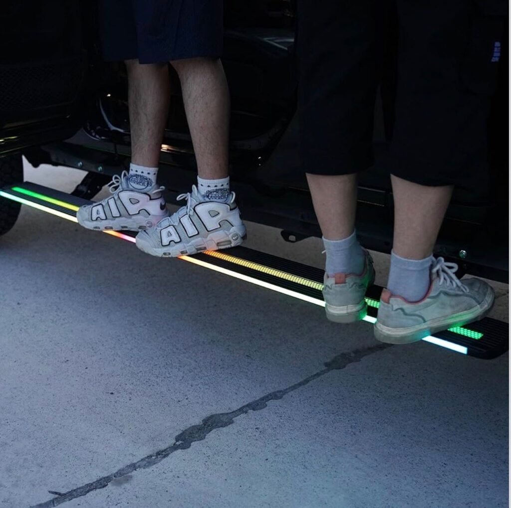 Our running boards include integrated LED lights for better visibility and a modern look.
